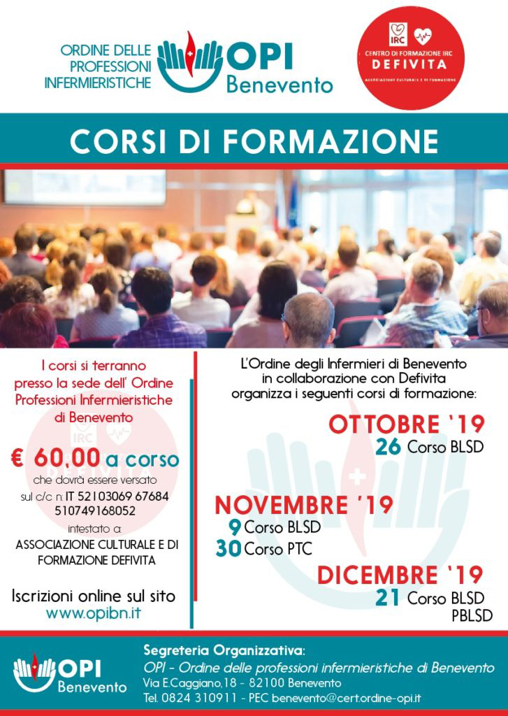 L’Associazione Culturale e di Formazione “DEFIVITA” è accreditata come Centro di Formazione I.R.C. (Italian Resuscitation Council) ed è lieta di presentarVI un’offerta formativa per tutti gli iscritti dell’OPI di Benevento.